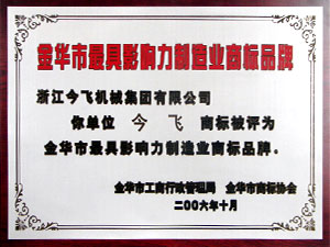 金華市最具影響力制造業(yè)商標(biāo)品牌