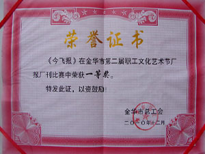 金華市第二屆職工文化藝術(shù)節(jié)廠報(bào)刊一等獎(jiǎng)