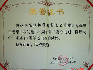 金華市希望工程實(shí)施20周年和“愛(ài)心助跑 圓夢(mèng)大學(xué)”實(shí)施10周年杰出公益伙伴