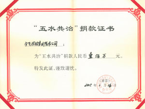 “五水共治”捐款證書(shū)