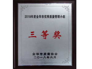 2018年度金華市優(yōu)秀質(zhì)量管理小組三等獎(jiǎng)
