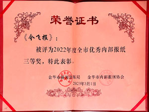 今飛報(bào)-2022年度全市優(yōu)秀內(nèi)部報(bào)紙三等獎(jiǎng)