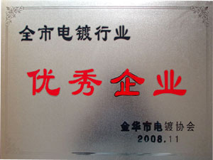 金華市全市電鍍行業(yè)優(yōu)秀企業(yè)