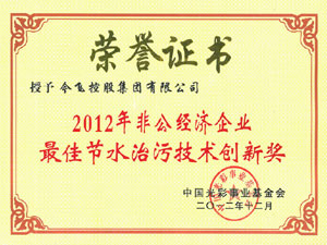 2012年非公經(jīng)濟企業(yè)最佳節(jié)水治污技術(shù)創(chuàng)新獎
