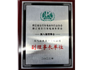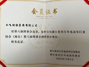 今飛控股-浙江省自行車電動車行業(yè)協(xié)會(商會)第八屆理事會副理事長單位