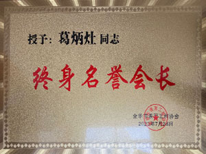 葛炳灶先生榮獲金華市表面工程協(xié)會終身名譽會長