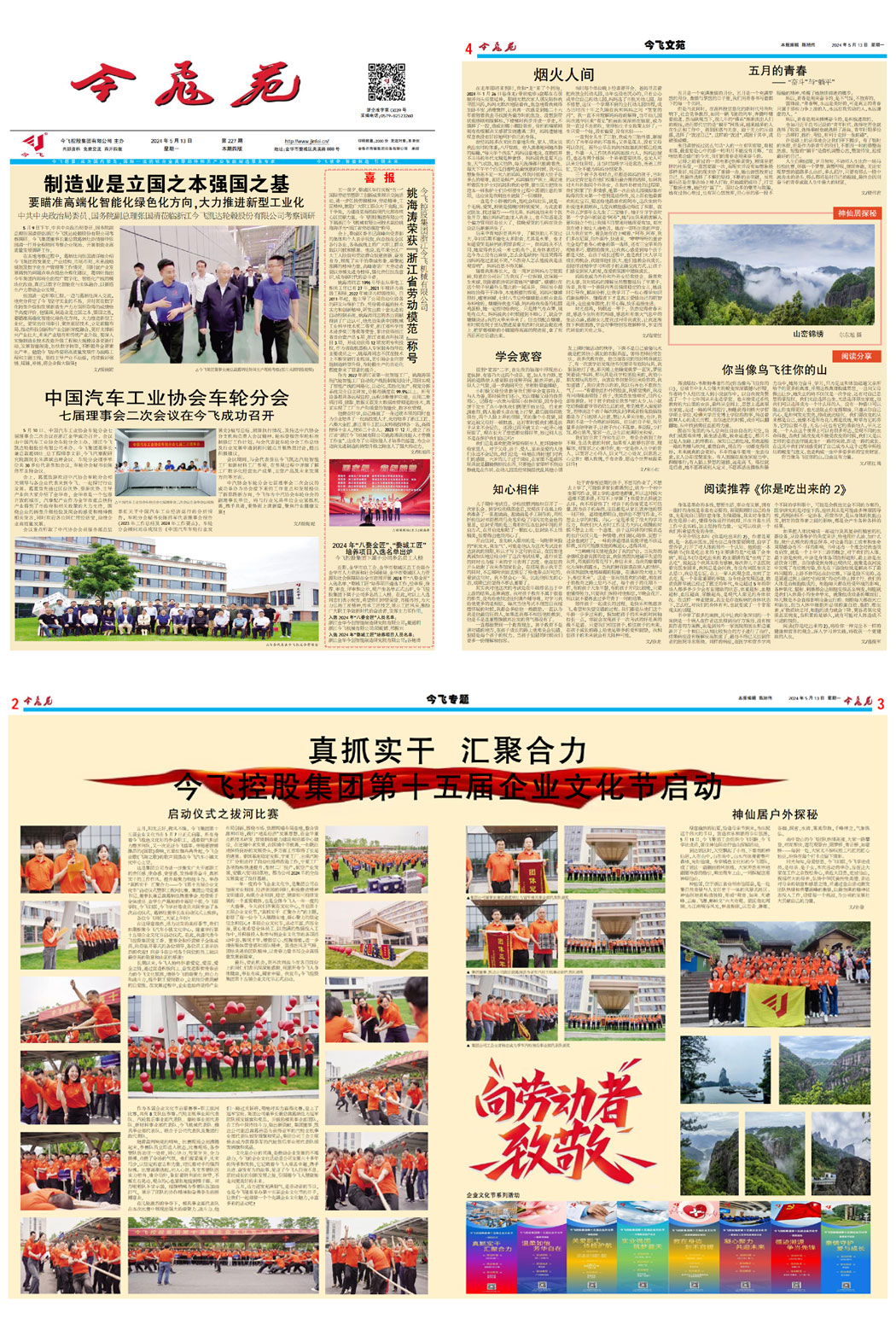 制造業(yè)是立國之本、強國之基 | 要瞄準高端化智能化綠色化方向,大力推進新型工業(yè)化一一中共中央政治局委員、國務院副總理張國清蒞臨浙江今飛凱達輪轂股份有限公司考察調研喜報|今飛控股集團浙江今飛機械有限公司姚海濤榮獲“浙江省勞動模范”稱號喜報丨2024年“八婺金匠”、“婺城工匠”培養(yǎng)項目入選名單出爐一一今飛控股集團下屬子公司多名員工入榜中國汽車工業(yè)協(xié)會車輪分會七屆理事會二次會議在今飛成功召開真抓實干?匯聚合力一一今飛控股集團第十五屆企業(yè)文化節(jié)啟動儀式溫柔如怡 芳華自在 | 今飛控股集團企業(yè)文化節(jié)之神仙居探秘活動煙火人間五月的青春一一“奮斗”與“躺平”你當像鳥飛往你的山閱讀推薦《你是吃出來的2》學會寬容知心相伴
