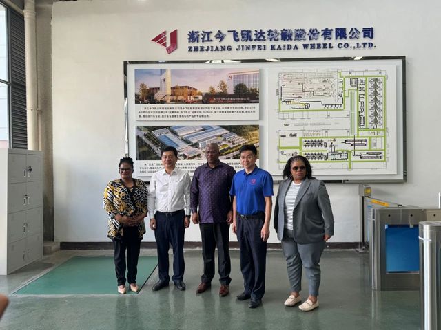 8月27日下午,南非東開普省省長奧斯卡·瑪布雅尼一行蒞臨浙江今飛凱達輪轂股份有限公司走訪調(diào)研,金華市委常委、副市長王志強陪同調(diào)研,凱達公司董事長葛炳灶、汽輪智能工廠廠長唐志斌熱情接待了奧斯卡·瑪布雅尼一行并陪同參觀車間生產(chǎn)現(xiàn)場。