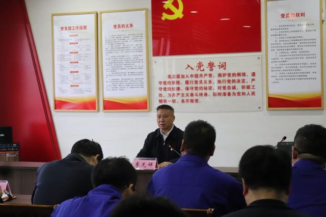 參觀完生產(chǎn)現(xiàn)場,李先祥來到了企業(yè)黨建室,給富源今飛黨支部全體黨員、積極分子、管理骨干講授“學習貫徹黨的二十屆三中全會精神專題黨課”。李先祥緊緊圍繞習近平總書記在黨的二十屆三中全會上的重要講話和全會《決定》,從全會的重大意義、重要講話精神、重大舉措以及貫徹落實等多個方面,為我們進行了全面、深入、系統(tǒng)的宣講和闡釋。通過生動的語言和豐富的案例,幫助我們更好地理解和把握全會精神的核心要義和實踐要求。此次黨課不僅是一次深刻的理論輔導,更是一次深刻的思想洗禮,為我們下一步深入學習貫徹全會精神指明了方向。
