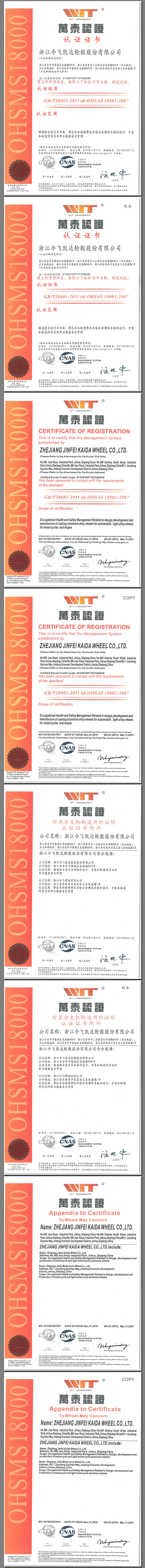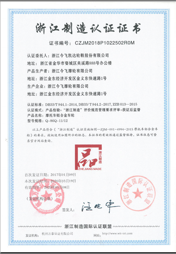 公司明確提出 “追求產(chǎn)品零缺陷,優(yōu)化服務(wù)創(chuàng)品牌”的質(zhì)量方針,在生產(chǎn)各工序、環(huán)節(jié)建立了嚴(yán)格的質(zhì)量控制體系,1998年公司就通過了IS09001質(zhì)量體系認(rèn)證,2004年通過了QS-9000、ISO/TS16949質(zhì)量保證體系審核,又先后通過了美國SFI、日本VIA實(shí)驗(yàn)室認(rèn)證、德國TUV認(rèn)證,并通過了北京奔馳、一汽夏利、昌河鈴木、豪爵鈴木、錢江集團(tuán)、新大洲本田等公司的第二方審核和美國戴姆勒-克萊斯勒、美國哈雷、意大利比亞喬等國際整車廠商的考評。于2007年4月獲得環(huán)境管理體系認(rèn)證證書。